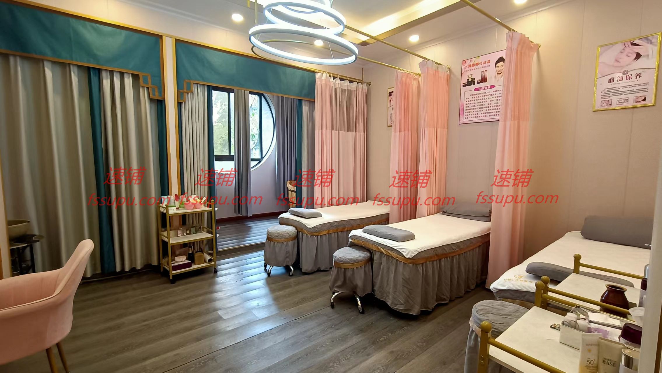 店铺118平方,租金6000元,一楼35平方,前台和一个房间,二楼83平方,一个大接待室,也可以隔开做房间,还有两个大房间,其中一个大房间三张美容床,有浴室浴缸,一个房间两张美容床和小仓库。还有独立洗手间和厨房,里面装修精美,整洁,目前有会员50多个,转让费带会员和两个月押金一起转让,价格可谈,由于本人回家发展才转让店铺,有想看店的提前电话联系,约时间看店。