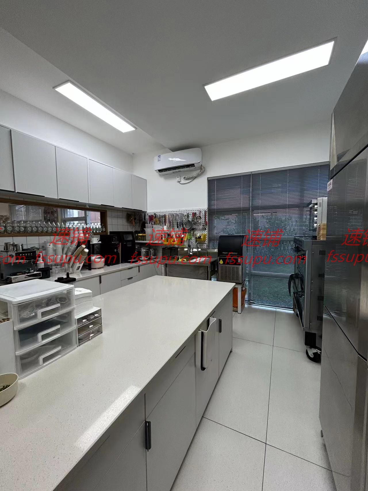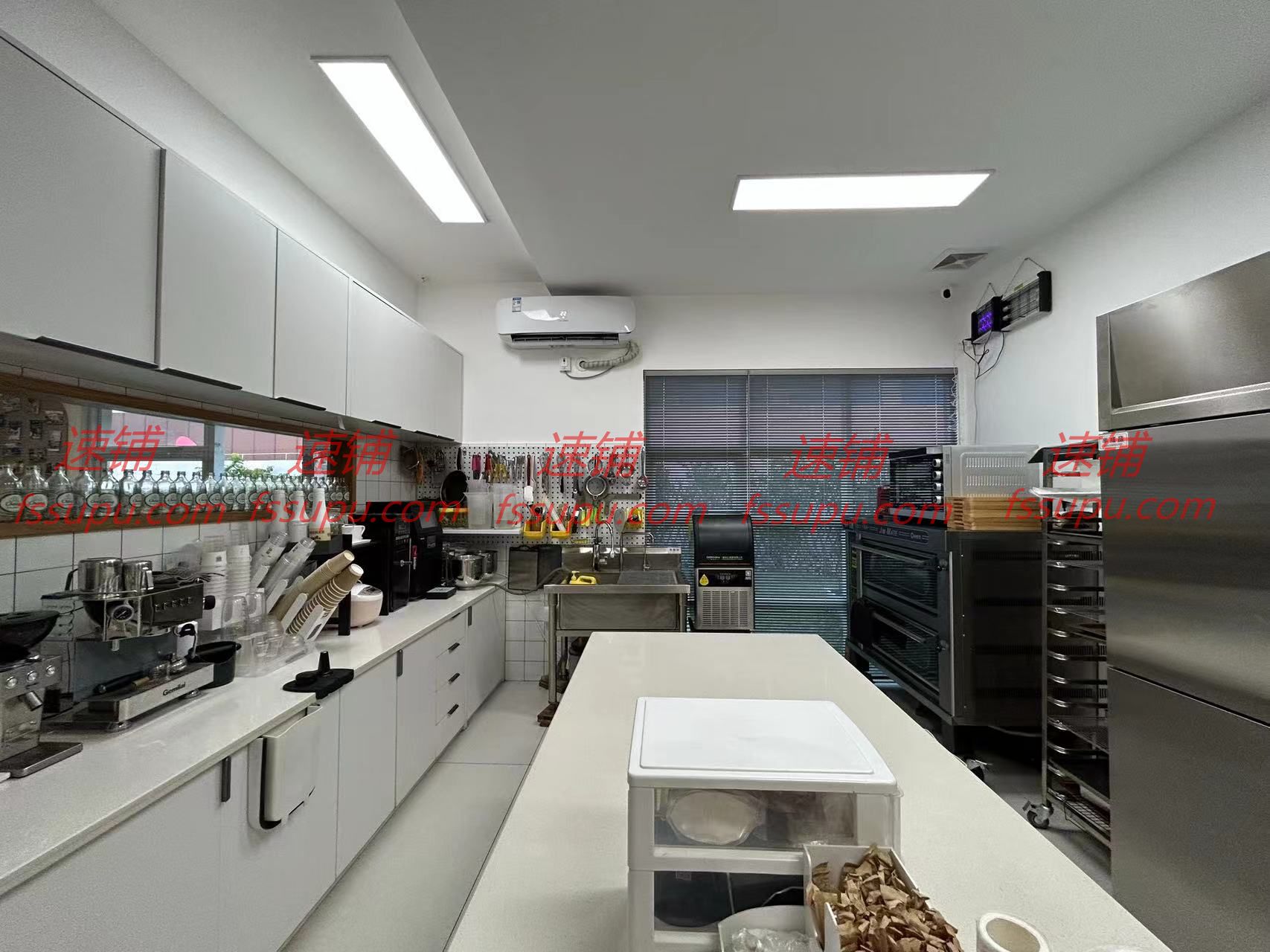 店内80多方,有厨房,裱花间,大厅。厨房里面冰箱,空调,咖啡机,烤箱,微波炉,橱柜等,冷饮咖啡设备,烘焙设备都齐全,可以做菜(不能明火)。大厅装修精致,空间大。室外有100多方的空中花园,真草坪树木,环境舒适,悠闲优美,还可以烧烤,有烧烤架。平时用于项目策划,也可以户外就餐。